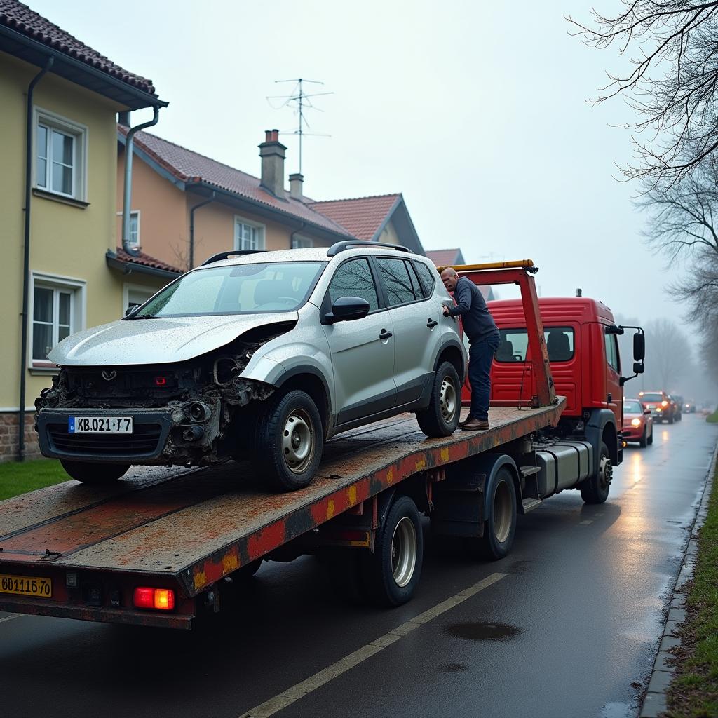 Umowa, gotówka i odbiór pojazdu lawetą